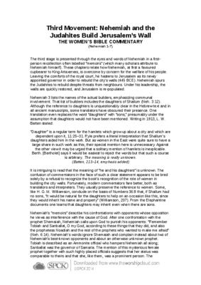 The third stage is presented through the eyes and words of Nehemiah in a first- person recollection often labelled “memoirs” (which many scholars attribute to Nehemiah himself)…