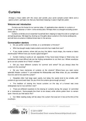 Curtains are the theme for our service today. Curtains or blinds are an essential household item, helping to keep the cold or sunlight out and giving privacy. We begin by sharing our thoughts about curtains in the home and beyond, and will look at curtains in biblical times later in the service.