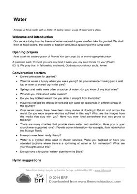 Our service today has the theme of water—something we so often take for granted. We shall think of flood waters, the waters of baptism and Jesus speaking of the living water.