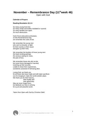 November – Remembrance Day (11th November) (week 46)