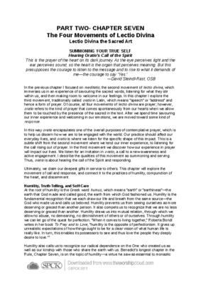 third movement, traditionally called oratio in Latin, which means “speech” or “address” and hence a form of prayer. Of course, all four movements of lectio divina are prayer; however, oratio refers to the kind of prayer that comes spontaneously from our hearts when we allow