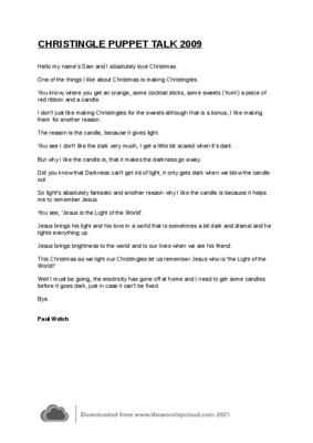 A Puppet talk for a Christingle service / assembly with the emphasis being on Light