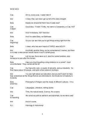Christmas - have you ever heard of THREE wise MEN?! Overcomes the problem of too many male parts at Christmas by imagining that there were 3 women instead, correcting our misunderstandings of the magi as to their jobs, gifts, method of travel.