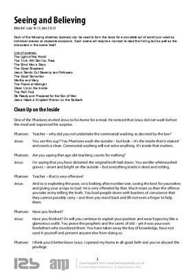 Each of the following sketches (scenes) can be used to form the basis for a complete act of worship or used as individual scenes on separate occasions. Each scene will require a narrator to read the linking text as well as the characters in the scene itself.