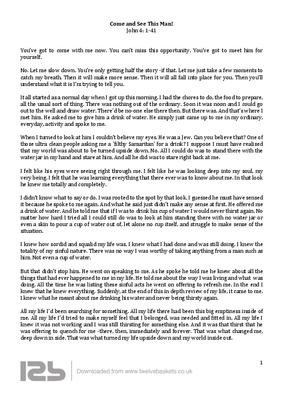 It all started as a normal day when I got up this morning. I had the chores to do, the food to prepare, all the usual sort of thing. There was nothing out of the ordinary. Soon it was noon and I could go out to the well and draw water. There'd be no one else there then. But there was. And that’s where I met him. He asked me to give him a drink of water. He simply just came up to me in my ordinary, everyday, activity and spoke to me.