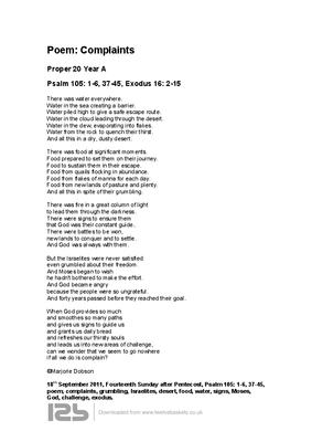 poem, complaints, grumbling, Israelites, desert, food, water, signs, Moses,