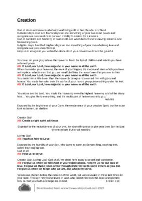 A prayerful liturgy for church or small group use, on the theme of 'Creation' - on one side A4 for ease of copying
