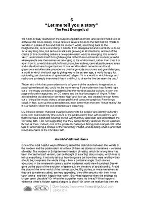 We have already touched on the subject of postmodernism and we now need to look at this a little more closely. I have referred several times to the fact that the Western world is in a state of flux and that the modern world, stretching back to the Enlightenment, is now crumbling. It has far from disappeared and is unlikely to do so for a very long time, but serious cracks are growing in all directions, and out of the cracks of this crumbling culture a new postmodern world is emerging. It is a world which understands itself through biological rather than mechanistic models; a world where people see themselves as belonging to the environment, rather than over it or apart from it; a world distrustful of institutions, hierarchies, centralized bureaucracies and male-dominated organizations. It is a world in which networks and local grassroots activities take precedence over large-scale structures and grand designs; a world in which the book age is giving way to the screen age; a world hungry for spirituality, yet dismissive of systematized religion.1 It is a world in which image and reality are so deeply intertwined that it is difficult to draw the line between the two…