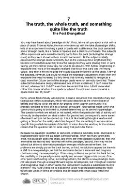 You may have heard about ‘paradigm shifts’. If not, let me tell you about a trick with a pack of cards. Thomas Kuhn, the man who came up with the idea of paradigm shifts, tells of an experiment involving a pack of cards with a difference: the pack contained some ‘strange’ cards, like a red six of spades and a black four of hearts. The subjects of the experiment were asked to identify cards from the pack (including the strange ones) as they were shown to them in rapid succession. All the subjects initially perceived the strange cards incorrectly, but as the exposure time lengthened they became confused because they knew the categories they were placing them in were wrong, yet they neither knew why nor what to do about it. With further lengthening of exposure time, most of the subjects realized that this or that card was the wrong colour, and after a few more goes they could accurately identify all the cards. A few of the subjects, however, just could not make the necessary adjustment; even when the exposure time was increased by forty times that normally needed to recognize a card, more than 10 per cent of the strange cards were not correctly identified. These subjects then became deeply distressed; one of them exclaimed, ‘I can’t make the suit out, whatever is it. It didn’t even look like a card that time. I don’t know what colour it is now or whether it’s a spade or a heart. I’m not even sure now what a spade looks like. My God!’…