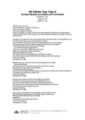 All Saints’ Day Year A Sunday between 30 October and 5 November