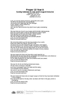 Proper 13 Year A Sunday between 31 July and 6 August inclusive