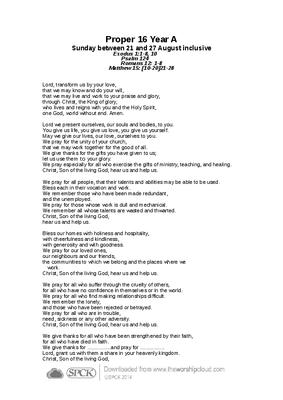 Proper 16 Year A Sunday between 21 and 27 August inclusive