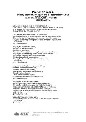 Proper 17 Year A Sunday between 28 August and 3 September inclusive