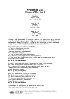 Almighty Father, we rejoice in the coming of Christ our Lord. We pray that, as he has taken on our humanity, through your grace and goodness we may share in your divinity, and so partake in the radiance of your glory; through him who came down for us and is alive and reigns with you and the Holy Spirit, one God, now and forever. Amen…