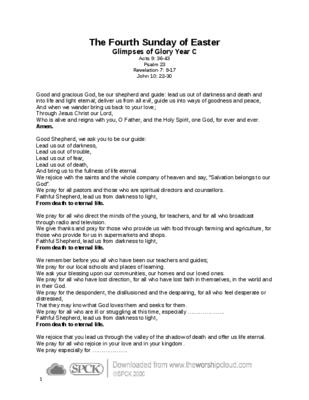Good and gracious God, be our shepherd and guide: lead us out of darkness and death and into life and light eternal; deliver us from all evil, guide us into ways of goodness and peace…