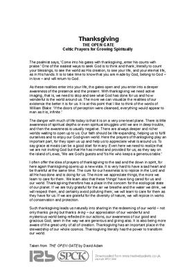 The psalmist says, ‘Come into his gates with thanksgiving, enter his courts with praise.’ One of the easiest ways to seek God is to think and thank; literally to count your blessings, to see the world as His creation, to see your life, and your eternal life, as in His hands. It is to take time to know that you are made by God, belong to God – in love – and will return to God...