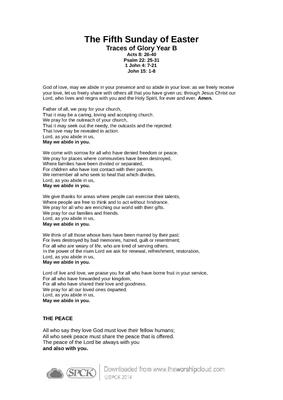 God of love, may we abide in your presence and so abide in your love: as we freely receive your love, let us freely share with others all that you have given us; through Jesus Christ our Lord, who lives and reigns with you and the Holy Spirit, for ever and ever. Amen…