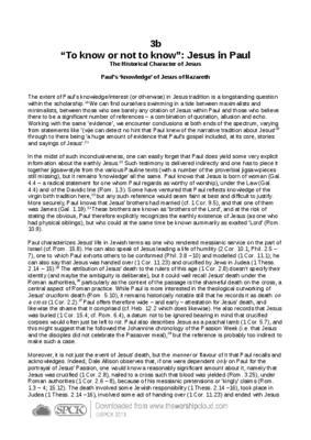 3b Paul’s ‘knowledge’ of Jesus of Nazareth