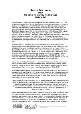 Taken from Jesus, his home, his journey, his challenge