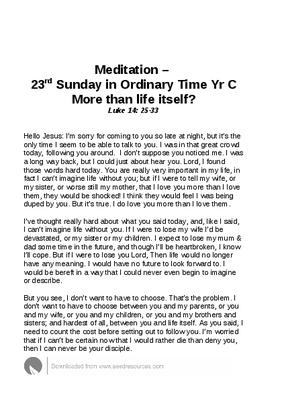 Meditation - 23rd Sunday in Ordinary Time Year C