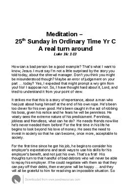 Meditation – 25th Sunday in Ordinary Time Yr C
