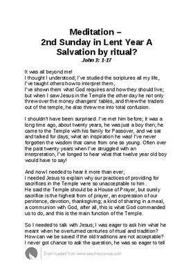 God doesn’t want offerings, even of a thousand rams, or rivers of olive oil; he wants to put his spirit within you, to create a new heart within you, a new desire to act justly, to love mercy, and to walk humbly with him. If you believe me, Nicodemus, you will walk in the light!’