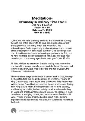 Job 42 v 1-6, 10-17 Psalm 34 v 1-8 Hebrews 7 v 23-28 Mark 10 v 46-52