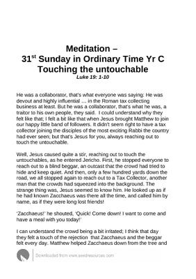 Meditation – 31st Sunday in Ordinary Time Yr C