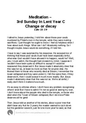 I talked to Jesus yesterday; I told him about those poor souls murdered by Pilate’s men in the temple, while they were making sacrifices. I just thought he ought to know. I feel so helpless when I hear about such things. What can I do? Absolutely nothing. So I thought maybe Jesus would do something, if I told him...