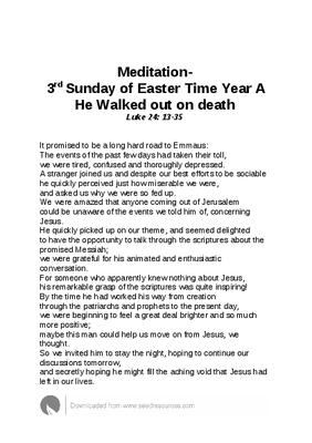 It promised to be a long hard road to Emmaus: The events of the past few days had taken their toll, we were tired, confused and thoroughly depressed. A stranger joined us and despite our best efforts to be sociable he quickly perceived just how miserable we were, and asked us why we were so fed up. We were amazed that anyone coming out of Jerusalem could be unaware of the events we told him of, concerning Jesus...