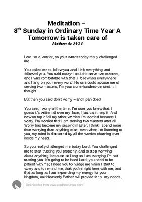 You called me to follow you and I left everything and followed you. You said today I couldn’t serve two masters, and I was comfortable with that. I follow you everywhere and hang on your every word. No one could accuse me of serving two masters; I’m yours one-hundred-percent… I thought...