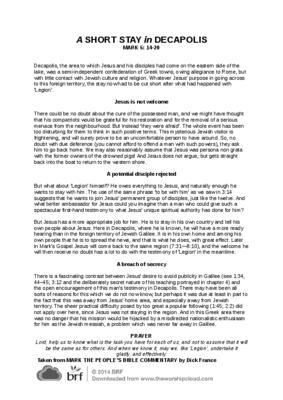 Decapolis, the area to which Jesus and his disciples had come on the eastern side of the lake, was a semi-independent confederation of Greek towns, owing allegiance to Rome, but with little contact with Jewish culture and religion…