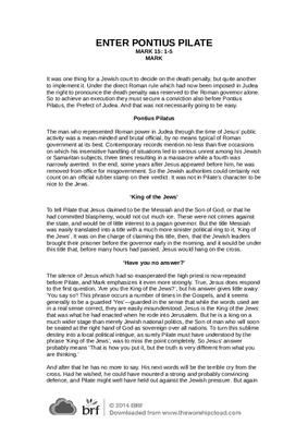 It was one thing for a Jewish court to decide on the death penalty, but quite another to implement it. Under the direct Roman rule which had now been imposed in Judea the right to pronounce the death penalty was reserved to the Roman governor alone. So to achieve an execution they must secure a conviction also before Pontius Pilatus, the Prefect of Judea. And that was not necessarily going to be easy…