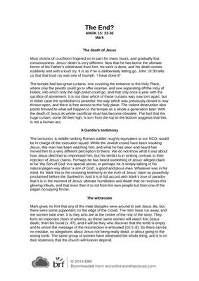 Most victims of crucifixion lingered on in pain for many hours, and gradually lost consciousness. Jesus’ death is very different. Now that he has borne the ultimate horror of his Father’s withdrawal from him, his work is done, and his death comes suddenly and with a loud cry. It is as if he is deliberately letting go. John 19:30 tells us that that loud cry was one of triumph, ‘I have done it!’…