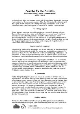 The question of purity, discussed in the first part of this chapter, would have important repercussions for the eventual expansion of the church to contain Gentiles alongside the original Jewish believers. This strange little story illustrates the point, as the Jewish teacher is confronted by a cry for help from an ‘unclean’ Gentile woman…
