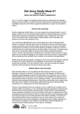 As in 7:17 and in chapter 4 a startling pronouncement is followed by the disciples asking Jesus to explain it. Surely he could not really want to sweep away the whole possibility of divorce (which Moses apparently allowed) at one go? So what did he mean?…