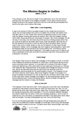 The prologue is over. We are no longer ‘in the wilderness’, but in the real world of ordinary men and women in the villages of Galilee. This is Jesus’ home province, though the focus of his mission will prove to be not in the hills around Nazareth but down by the lake, some twenty miles away…