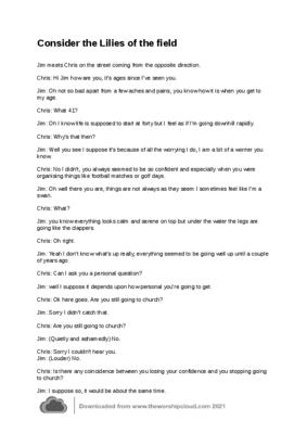A Sketch based upon Consider the Lillies of the field for two people or puppets