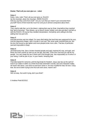 And that promise was two edged. So many died taking that land that was supposed to be ours. And the arguments began: was it murder or just war? We never quite resolved that one. But the ties that bound us got tighter and more people broke more rules. That law of perfection seemed impossible to keep.