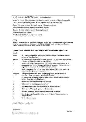 Drama based on Ezra 3 to 6, covering the 10 year struggle of the Jews to rebuild Jerusalem from the viewpoint of officials in the Persian empire. Style a tribute to the obvious TV series, but characters taken from the Bible. 4 characters - should all be male. 6 short scenes, so longer than normal sketch - about 10 minutes. Could split into 2 or 3 sections.