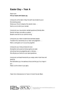 Risen Lord Fill our hearts with Easter joy. Living Lord, at the dawn of day the earth was shaken by your life-restoring power. Shake your Church today by this seismic news . . .
