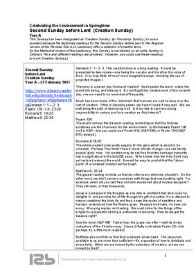 Second Sunday before Lent (Creation Sunday) Year A