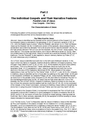 Following the pattern of the previous chapter (on Mark), we will look first at Matthew’s christological titles and then at his characterization of Jesus…