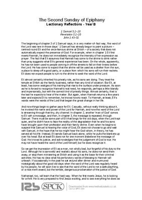 The beginning of chapter 3 of 1 Samuel says, in a very matter-of- fact way, ‘the word of the Lord was rare in those days.’ 1 Samuel has already begun to paint a picture – centred round Eli and the once-famous shrine at Shiloh – of a society that does not automatically expect the presence of God. For example, when in chapter 1 Elirst meets Hannah, he does not immediately recognize the intensity of her expression as prayer. The fact that Eli assumes that Hannah has come to the shrine to drink rather than pray suggests what Eli’s general experience has been. On the whole, apparently, he has not been used to people coming in off the streets to fall on their knees before the Lord. He has come to expect that the shrine will be used as a shelter from the sun, a place to sleep off a good party, or a place from which his sons will run their rackets. Eli does not expect people to turn to the shrine to seek the word of the Lord...
