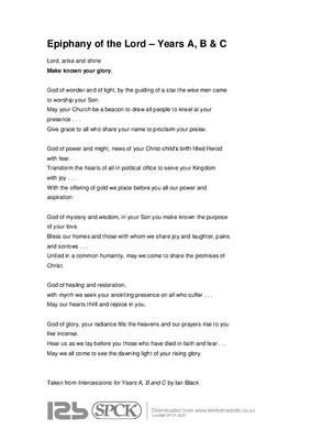 Lord, arise and shine Make known your glory. God of wonder and of light, by the guiding of a star the wise men came to worship your Son. May your Church be a beacon to draw all people to kneel at your presence . . .