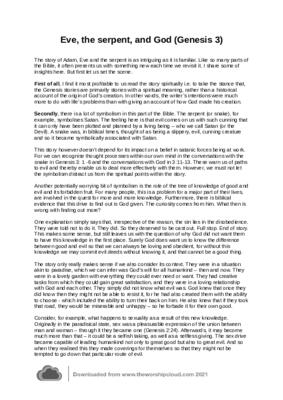 This reflection, which has been successfully used as a short (c 1000 words) sermon, is an examination of the nature of humankind in general, and the origin of evil in particular. To do this it analyses the symbolism of the passage to provide insights into what the author of Genesis was saying even to us today. Implications for our thinking and behaviour are also considered.
