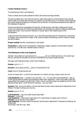 The service starts as a normal service and is rudely interrupted by a lost shepherd who was left behind when his mates went running of in search of a New Born King. The narrator, Bible readings and carols helps the shepherd in his search for his friends. He follows the shepherds and walks in the footsteps of wisemen.