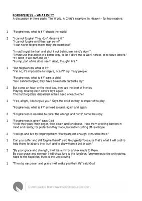 1 “But forgiveness, what is it?”