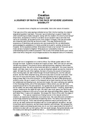 That was one of the wise sayings collected at our first L’Arche meeting. My original anguished question had been, ‘How can I go on believing in a good Creator God when something so drastic has gone wrong with the creation of a new human being?’ Meanwhile, acceptance of Arthur’s condition as an accident was a reminder that we’re all vulnerable, all accident-prone, that creation is fragile, that loss and death are inherently part of the life we know on earth. This was reinforced by the experience of identifying with persons who are impaired for life, an identification acknowledged by assistants in L’Arche and felt by myself in worship at Monyhull Hospital. So the questions shifted: What does it mean to be human? How are we to make sense of creation’s fragility? What does our vulnerability mean for understanding God’s creative purposes? This is one of the areas where now I would claim that Arthur has given me privileged access to the deepest truths of Christianity…