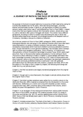 My purpose in this book is to give testimony to a journey of faith inspired by caring for a profoundly disabled son for 45 years, while also being theologian, university teacher and Methodist minister. It takes up, yet significantly modifies, the earlier account written when Arthur was 17 and published as Face to Face (1985) – indeed, most of the first two chapters is drawn from that earlier version, whose climax was my call to ordination after years of struggle with doubt. This version has a different perspective, focusing on Arthur’s vocation and articulating the way in which this life-dominating experience has given me privileged access to the deepest truths of Christianity. Inevitably it draws on a lifetime of reflection…